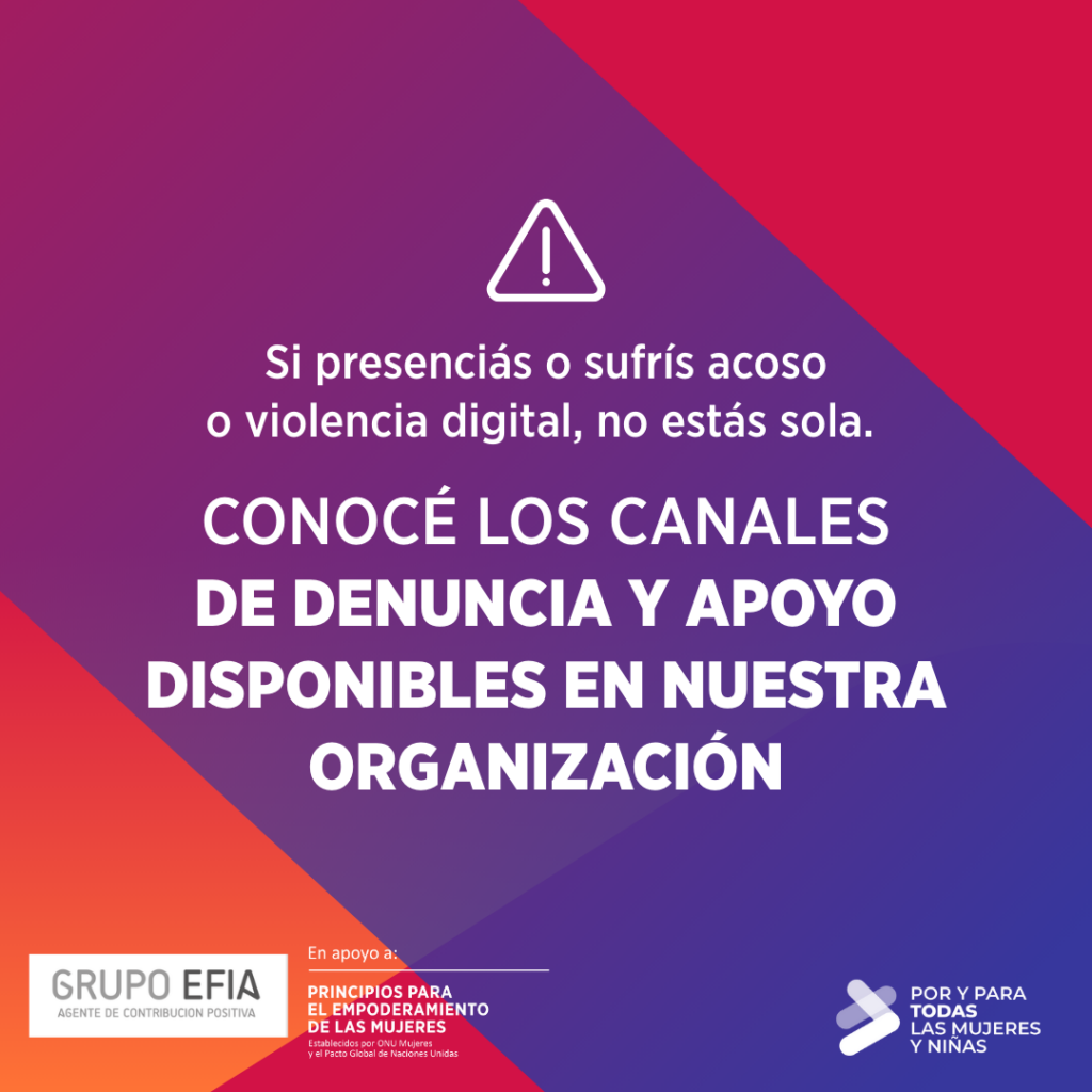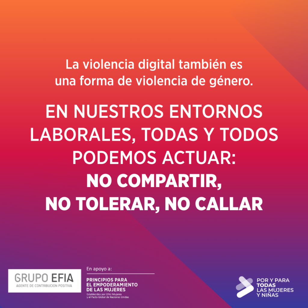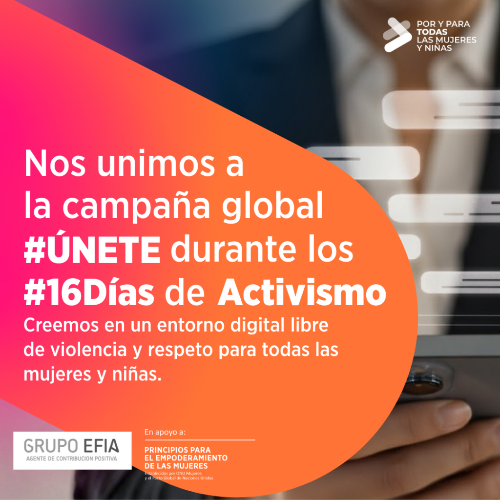 En GRUPO EFIA creemos que el cuidado de las personas es parte esencial de nuestro rol como Agentes de Contribución Positiva. Por eso, nos sumamos a la campaña global UNETE 2025, impulsada por el Sistema de Naciones Unidas y ONU Mujeres, que este año pone el foco en la violencia digital como una de las formas más extendidas —y muchas veces invisibilizadas— de violencia de género.